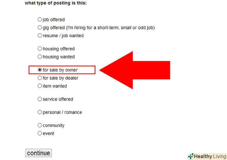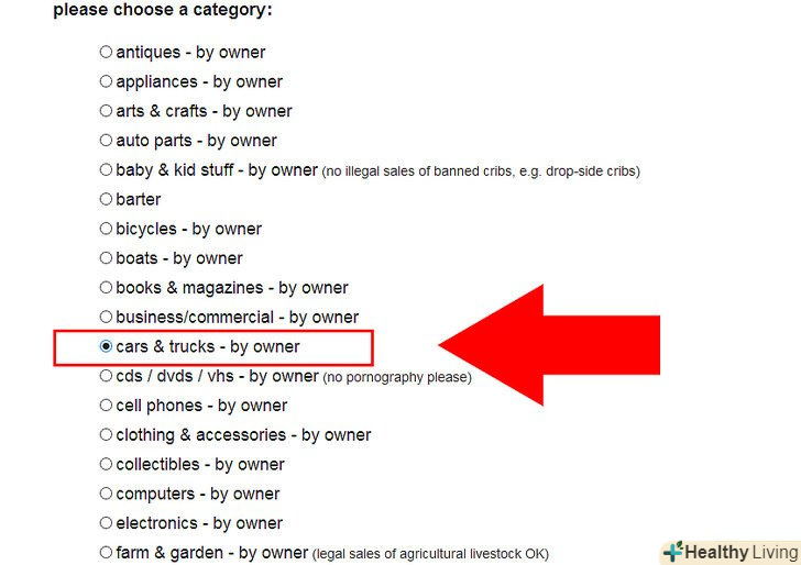 Виберіть "cars amp; trucks - by dealer" або "cars amp; trucks - by owner" залежно від того чи є ви приватним продавцем або сертифікованим дилером.(у цьому прикладі використовується опція "by owner").