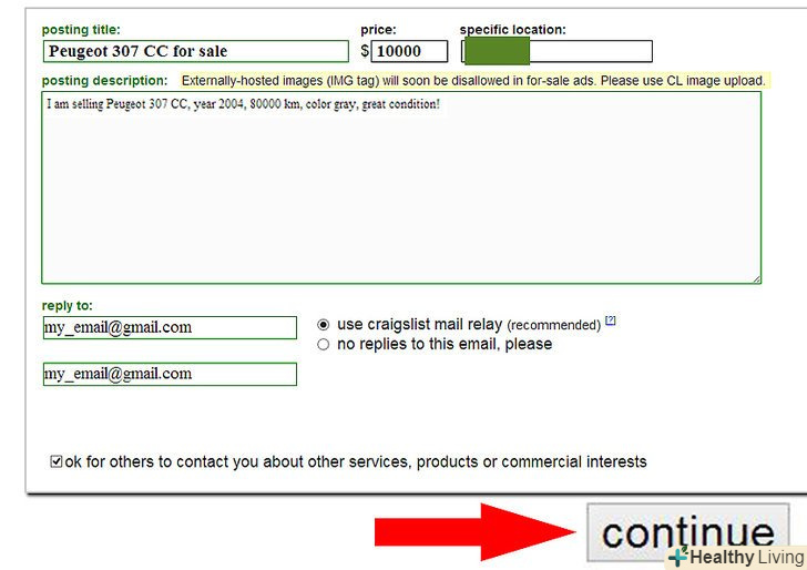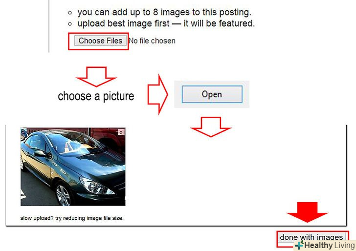 Craigslist-це безкоштовний онлайн сервіс оголошень, який дозволяє розміщувати рекламу в залежності від географічного положення і конкретних категорій, таких як Робота, Знайомства, речі на продаж або послуги по дому. Сервіс є онлайн версією класичних оголошень в газеті. У цій статті ви дізнаєтеся, як продати свою машину на Craigslist.