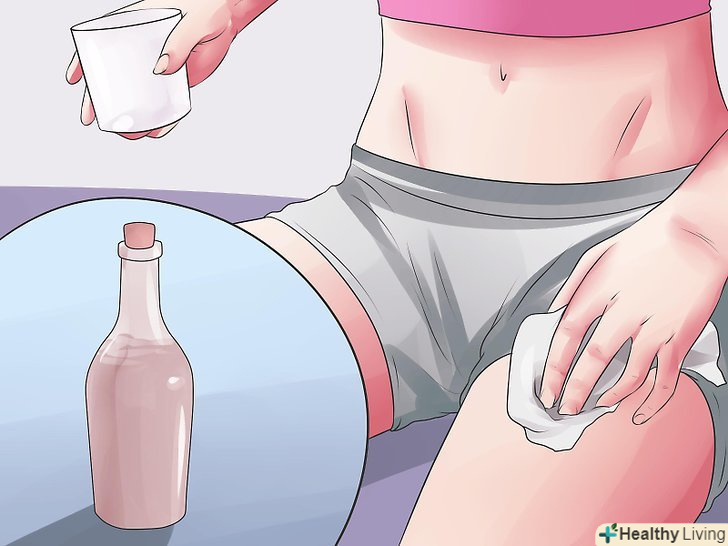 Використовуйте тест з оцтом.перед зверненням за медичною допомогою, ви можете самостійно провести тест з оцтом, який покаже наявність гострої кондиломи. Вам буде потрібно оцет, кілька паперових серветок і контейнер.[2]- Налийте невелику кількість оцту в контейнер. Вимийте перевіряється область водою з милом.