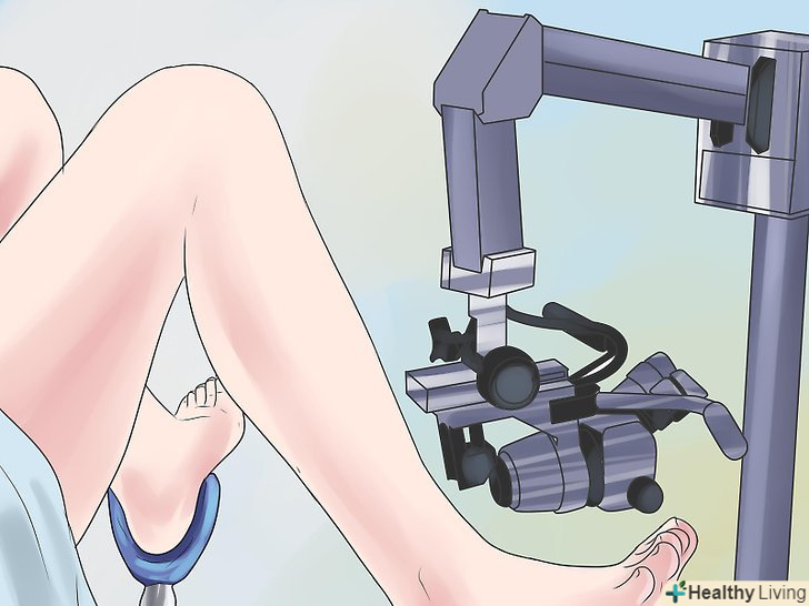 Здайте біопсію.при підозрілих результатах при кольпоскопії або при результатах мазка про інфікування ВПЛ може знадобитися біопсія. Біопсія-це процедура, при якій хірургічно береться шматочок тканин для мікроскопічного аналізу.- Зазвичай ця процедура проводиться під місцевою анестезією, але при необхідності може застосовуватися наркоз.