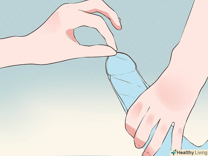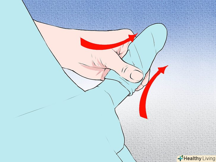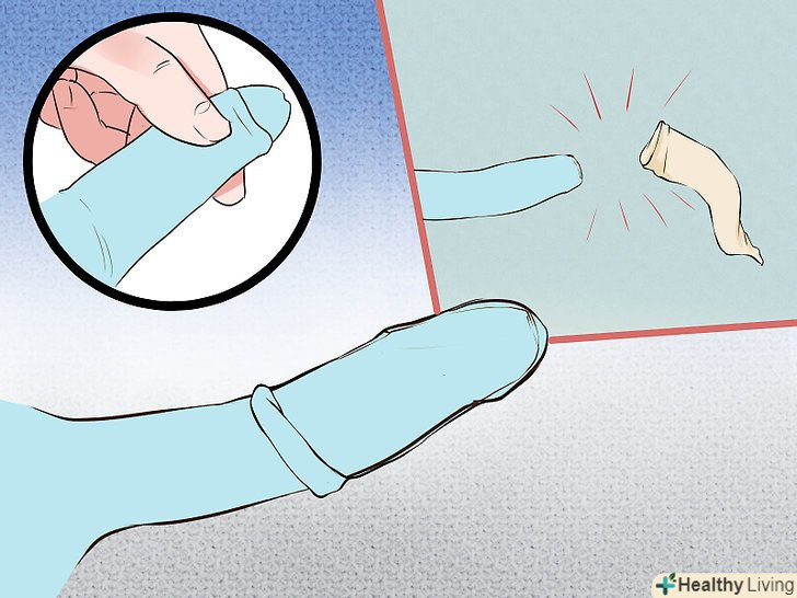 Запам'ятайте, що потрібно робити в тому випадку, якщо крайня плоть не стягується з головки пеніса.у деяких чоловіків крайня плоть на кінці головки пеніса занадто туга, щоб можна було оголити всю головку. Іноді це пов'язано з фімозом – патологією, при якій крайня плоть занадто вузька, щоб головка пеніса могла оголитися. Саме по собі такий стан не є проблемою, і якщо ви не можете повністю оголити головку пеніса, просто розкочуйте презерватив по пенісу, не чіпаючи крайню плоть.- Ймовірність того, що презерватив порветься або зісковзне не залежить від того, вдалося вам відсунути крайню плоть чи ні.
