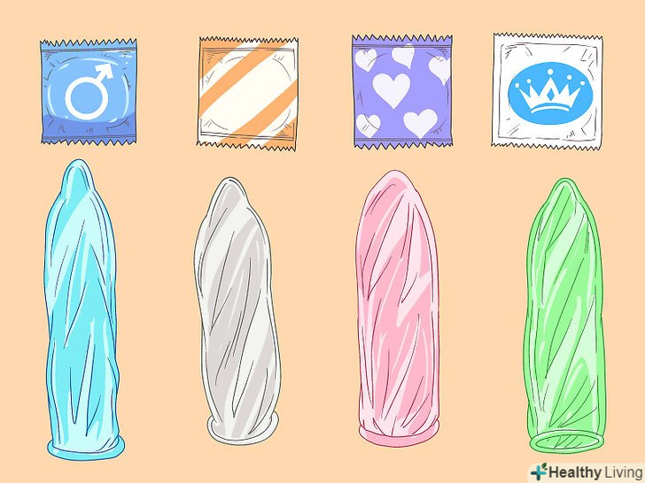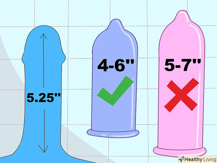 У Росії вам потрібні презервативи стандартного розміру (M), якщо ширина пеніса потрапляє в проміжок від 52 до 56 мм. важливо відзначити, що "стандартне" значення відрізняється в різних країнах, так що завжди шукайте на упаковці конкретні цифри перед покупкою. Презервативи стандартного розміру у великому асортименті представлені в магазинах, так що у вас буде непоганий вибір. На цей розмір ви зможете знайти не тільки звичайні презервативи, але і презервативи з різними текстурами, лубрикантами і ароматизаторами. Навіть якщо орієнтуватися на стандартні розміри, ви помітите, що презервативи різних виробників будуть сидіти по-різному. Всі вони однаково безпечні, але краще з часом підібрати ті, які будуть максимально комфортними саме для вас.[9]- Наприклад, ви можете підібрати марку презервативів, у яких довжина виробу максимально наближена до довжини вашого пеніса.