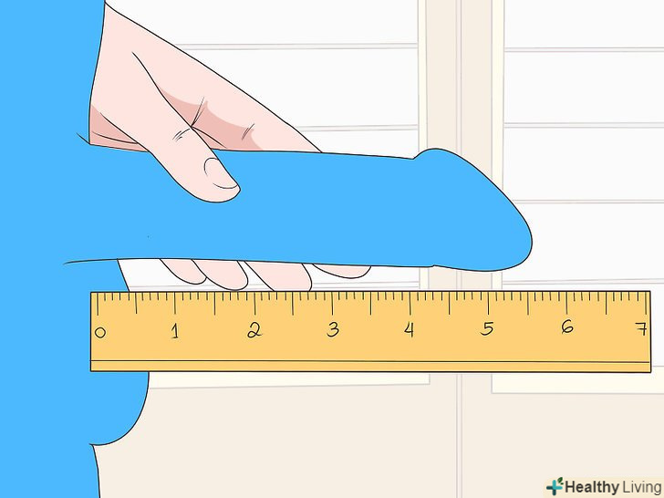Притисніть стовбур пеніса до лінійки (мірної стрічці) так, щоб між ними не було зазорів.робіть це акуратно, не тягніть пеніс.[7]