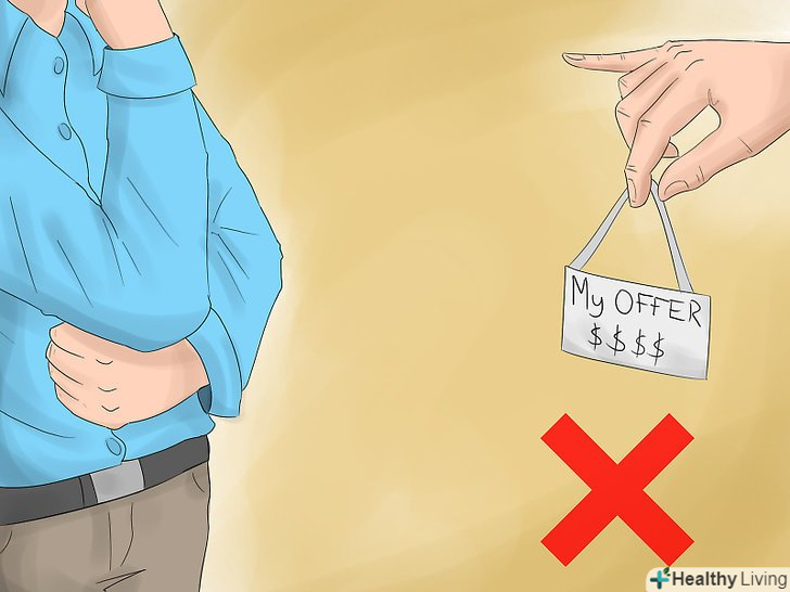 Не робіть пропозицію першим.[6] якщо ви запропонуєте першим, сума може бути більше, ніж продавець хотів запропонувати. В результаті, ви заплатите більше.- Продавець буде задавати вам питання: "який місячний платіж ви можете собі дозволити?"або" скільки ви готові заплатити?".