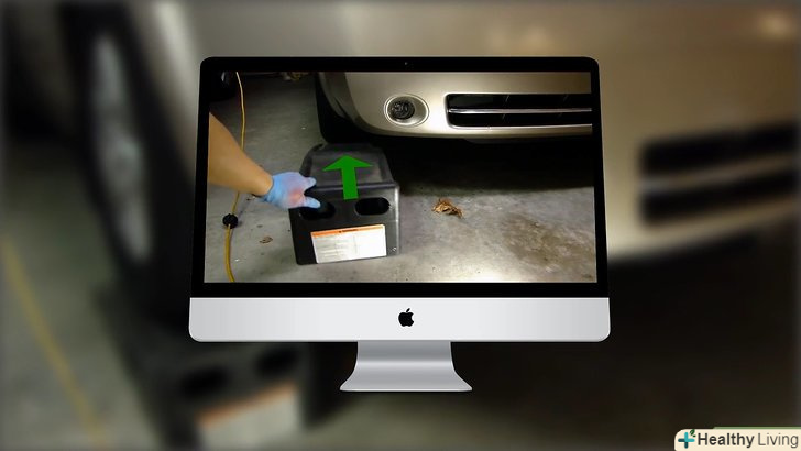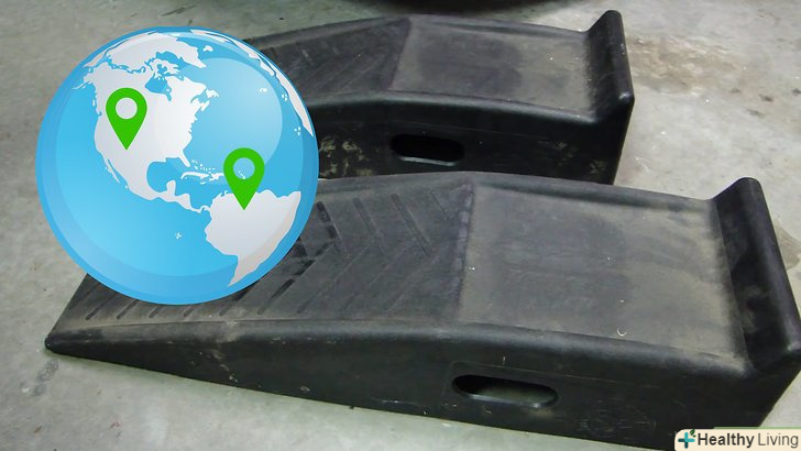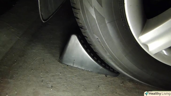При необхідності купите противідкати.мінімум два противідкатних черевика для коліс рекомендується використовувати всякий раз, коли ви заганяєте автомобіль на естакади. Під час експлуатації противідкатів дуже рідко виникають проблеми, але при наявності в гаражі гладкого або слизького статі краще придбати м'які гумові упори.[4]