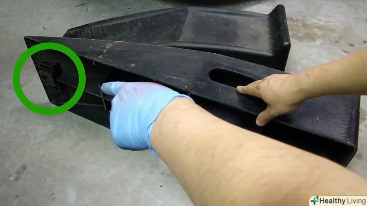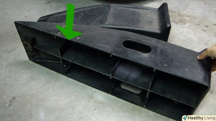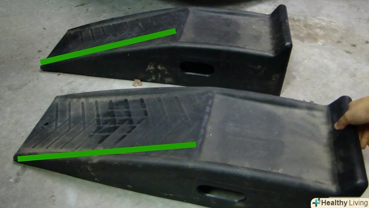 Перевірте наявність гумових упорів, які запобігають ковзанню по підлозі.нижня сторона багатьох пандусів має гумові протиковзкі елементи, які не дозволяють пристрою відсуватися, коли автомобіль починає на них заїжджати. Це особливо важливо, якщо обслуговування планується проводити на гладкій поверхні, адже так у міру наїзду автомобіля на пандуси вони не будуть від'їжджати вперед.[3]