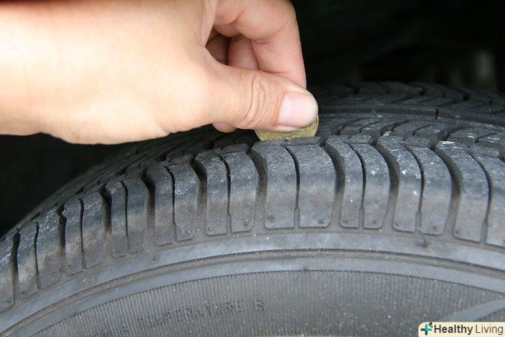 Перевірте протектор за допомогою "одноцентового тесту". Візьміть одноцентову монету і переверніть її, щоб Лінкольн дивився на вас, і помістіть її в центр протектора (в саму товсту частину шини).- Якщо ви бачите верхівку голови Лінкольна або простір над нею, негайно замініть шини.