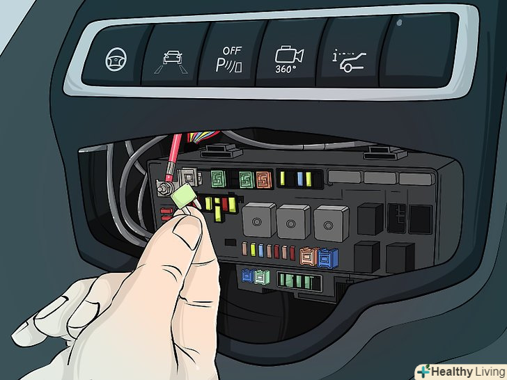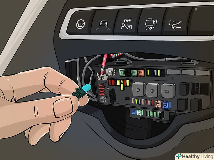 Перевірте запобіжники підсвічування приладової панелі.Перегорілий запобіжник може відключити підсвічування приладової панелі. Блок запобіжників може перебувати під капотом або на підлозі, біля педалі гальма. Також може бути 2 блокав різних місцях. Вивчіть діаграму на кришці блоку, щоб знайти потрібний запобіжник. Замініть запобіжник, якщо він перегорів.- Використовуйте запобіжник того ж типу, щоб уникнути проблем з електрикою в автомобілі.