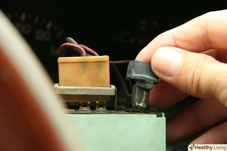 Перевірте лампи підсвічування.якщо з запобіжниками все в порядку, то можливо перегоріла одна з ламп на приладовій панелі. Дотримуючись інструкцій виробника автомобіля, зніміть лицьову панель з приладової панелі. Викрутіть фіксуючі Болти. Обережно зніміть лицьову панель. Лампи повинні розташовуватися на задній стороні панелі.- Викрутіть лампу з гнізда. Не крутите занадто сильно, щоб не зламати скло.