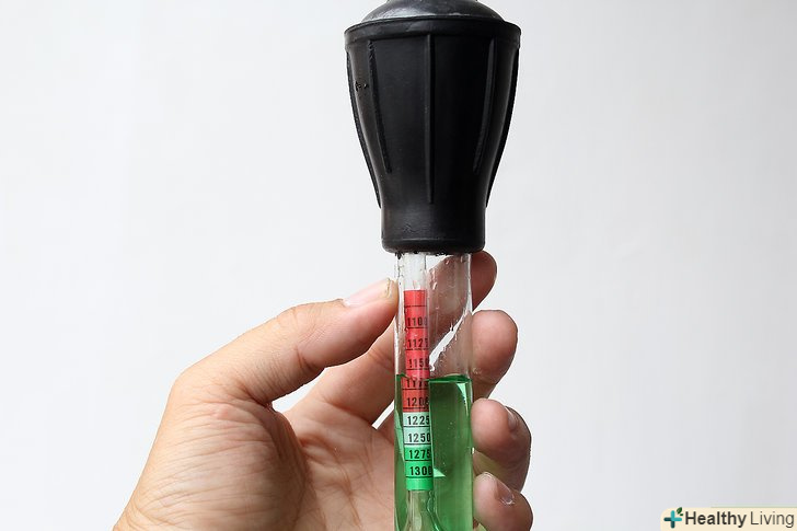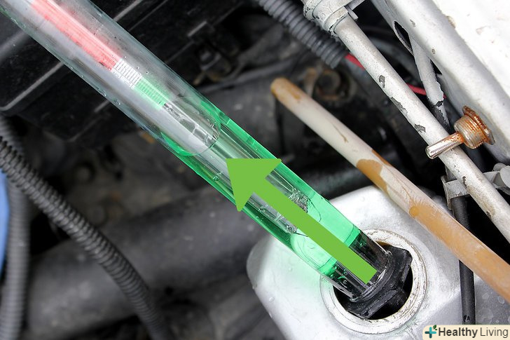 Дізнайтеся рівень замерзання або кипіння на ареометрі.якщо ваш ареометр використовує голку, голка повинна вказувати на поточну температуру або діапазон температур. Якщо він використовує кілька пластикових кульок, число куль, які можуть спливти, показує, наскільки добре ваш антифриз захищає двигун від замерзання або кипіння. Якщо рівень недостатній, то вам потрібно або додати охолоджуючу рідину, або замінити її.- Ви повинні перевіряти рівень захисту охолоджуючої рідини навесні і восени, або, якщо ви водите машину в екстремальних умовах, і того частіше.