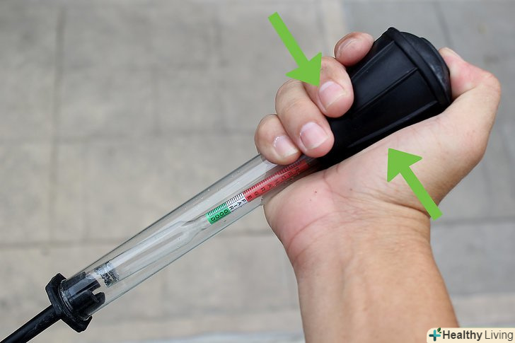 Стисніть трубку ареометра.це змушує повітря виходити з ареометра.