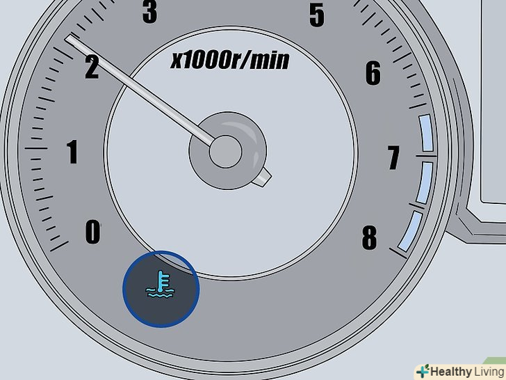 Слідкуйте, чи не загориться на приладовій панелі значок, що попереджає про низький рівень охолоджуючої рідини.поява цього символу може означати, що тече розширювальний бачок або помпа. Взагалі, причиною може виявитися будь-який витік в системі охолодження.