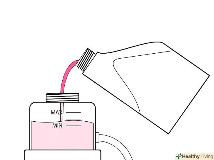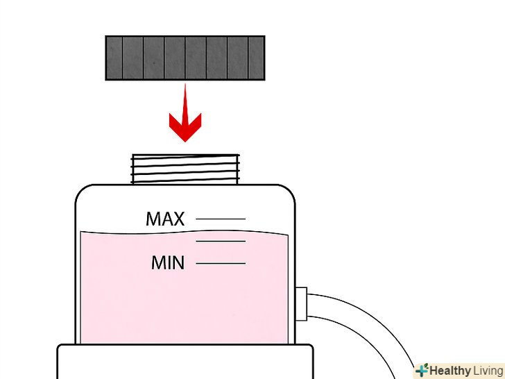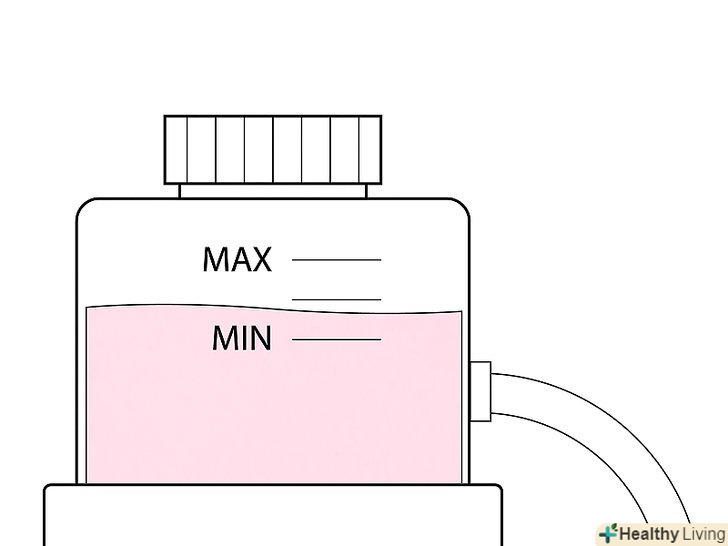 Заповніть рідиною бачок гідропідсилювача до потрібного рівня.якщо на бачку вашого автомобіля нанесені позначки рівня, то ви можете просто долити рідину до необхідної "гарячої» або "холодної" риси наповнення; якщо ж ви перевіряєте рівень щупом, то слід додавати рідину поступово, щоб уникнути переливу резервуара.- Переконайтеся, що ви використовуєте рідину для гідропідсилювача, рекомендовану саме для вашого автомобіля, так як для кожного гідропідсилювача потрібна своя в'язкість (щільність) для правильного харчування системи рульового управління.