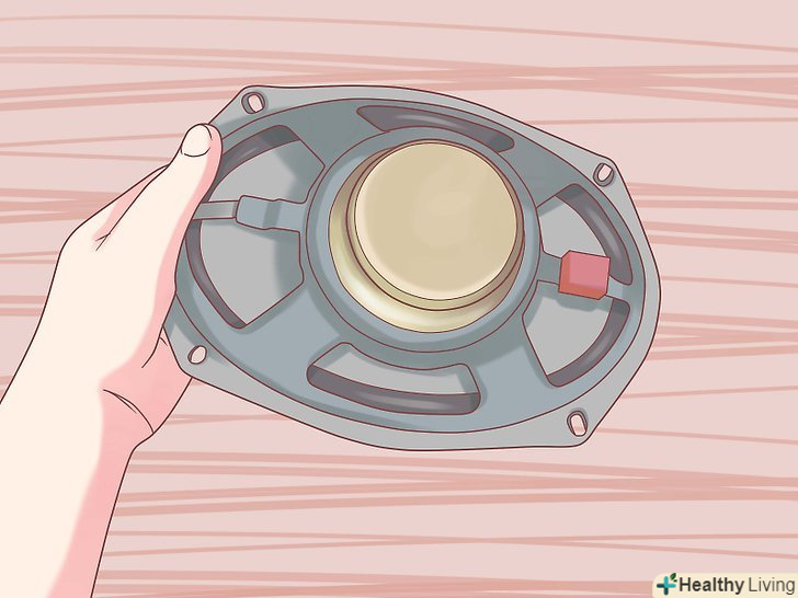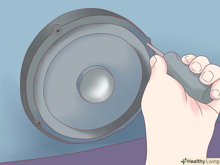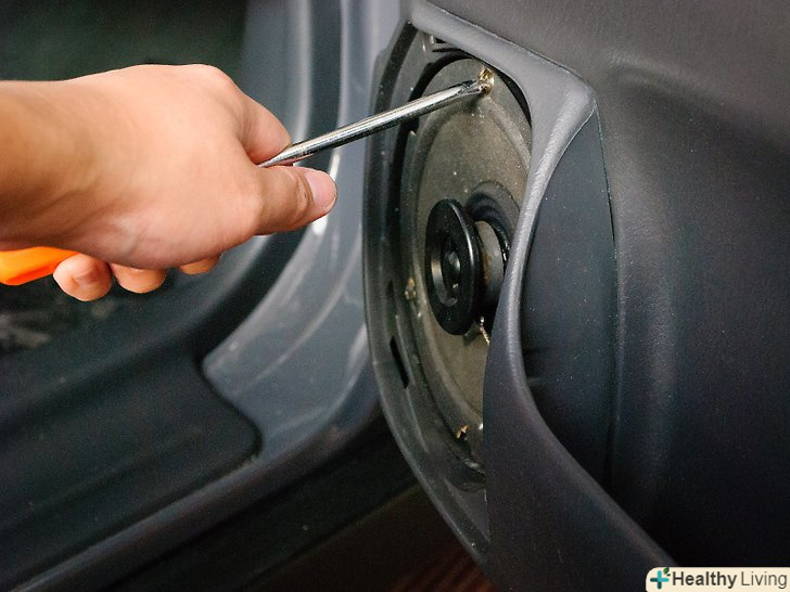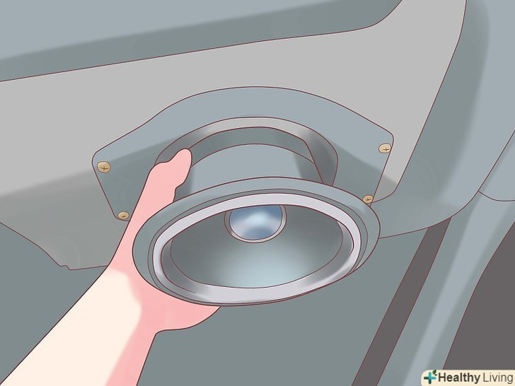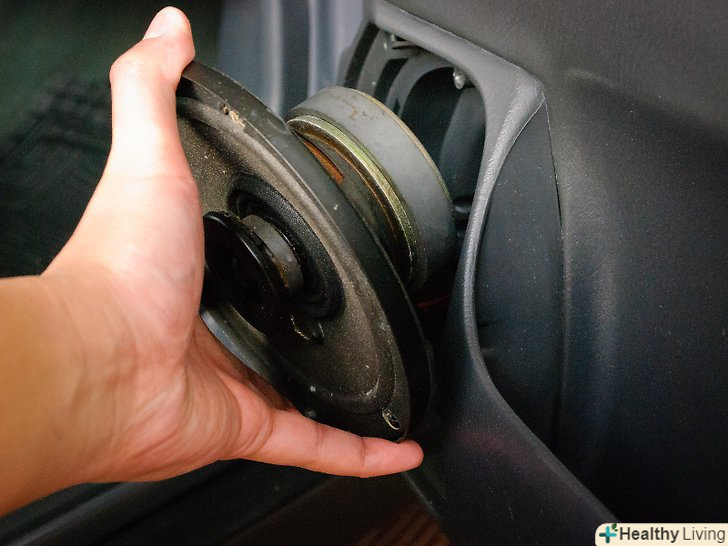 Видаліть заводський динамік.зауважте, динамік зазвичай, але не завжди, прикріплений до електропроводки, так що подбайте про те, щоб не порвати її при витяганні. Також може виявитися, що треба відкрутити один або більш дрібних болтів і\або відламати клейку масу або клей, яким динамік закріплений.- Якщо вважаєте, що вам доведеться в майбутньому заново ставити заводські динаміки (наприклад, при продажу машини), не забудьте зберегти викручені саморізи.