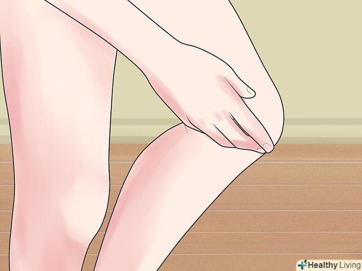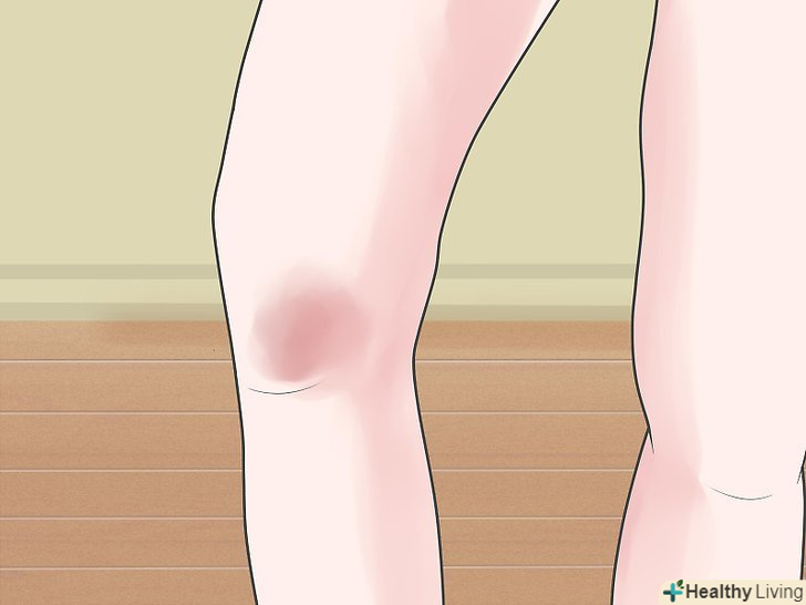 Перевірте наявність запалення і хворобливих відчуттів.запалення є реакцією організму на лікування травми. Під час відновлення зазвичай виникає набряк, біль, підвищена температура і почервоніння травмованої частини тіла. Покладіть руку на коліно і перевірте, чи не потепліло воно і чи не збільшилася в розмірах. Крім того, перевірте, чи болить коліно при торканні. Коліно також може може почервоніти.[1]- Теплота в ураженій області викликана збільшенням припливу крові. Кров переносить тепло від внутрішніх органів до більш холодних периферичних тканин.[2]