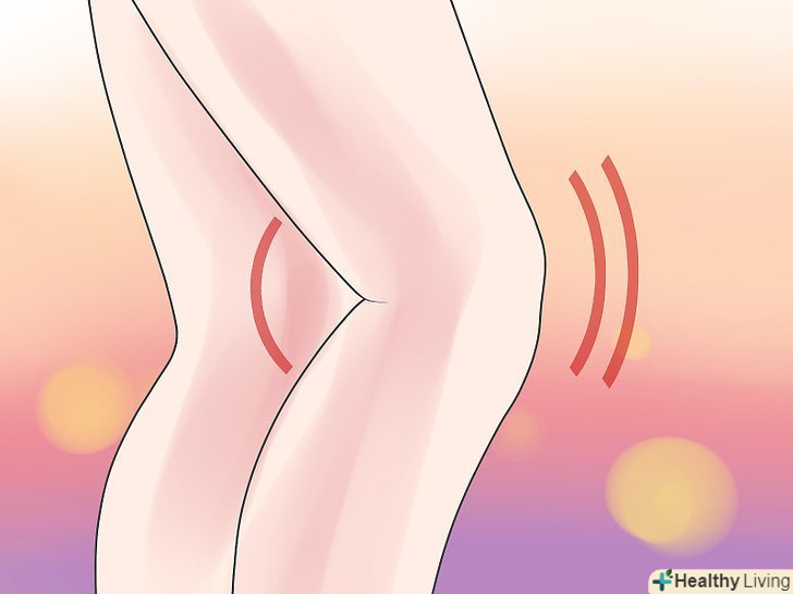 Прислухайтеся до звуків і перевірте гнучкість.обережно посувайте ногою і зверніть увагу на дивні звуки (скрегіт або клацання), що виходять від коліна. Такі шуми можуть свідчити про те, що ви щось розірвали. Коли будете прислухатися, подивіться також, Чи можете ви повністю випрямити ногу. Нездатність повністю зігнути або випрямити ногу і коліно є вірною ознакою розтягування.[8]