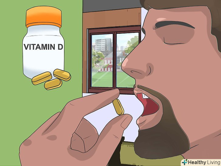 Для полегшення хронічного болю приймайте вітамін D. низький рівень вітаміну D пов'язаний з хронічним болем.[11] Вітамін D полегшує м'язову втому і скорочує відновний період.[12]- Приймайте 200 МО (дві капсули) вітаміну D3 щодня. Вітамін D виробляється в шкірі на сонці, проте хворий чикунгуньей зазвичай проводить час вдома, саме тому можуть знадобитися харчові добавки вітаміну D.
