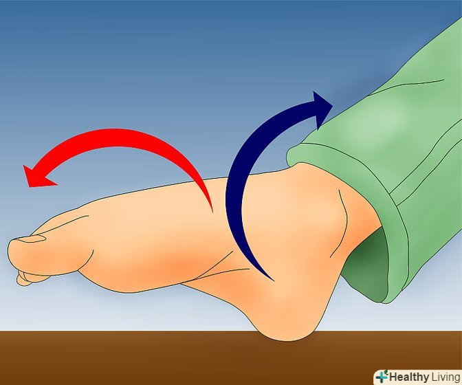 - Енергійно потріть рушником внутрішню частину ноги і одночасно тягніть пальці ніг у напрямку до себе. Щоб потягнути внутрішню частину стопи, напружте пальці ніг на кілька хвилин, а потім розслабте.
