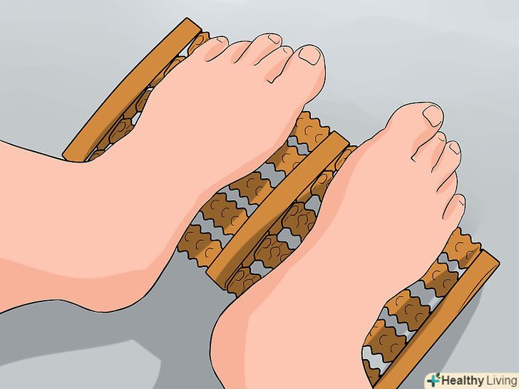 Спробуйте масаж ніг.запишіться на масаж ступень і литок. Такий масаж зменшить напругу і запалення м'язів, допоможе видалити рубцеву тканину і поліпшити кровообіг.[10] попросіть масажиста почати з пальців ніг, просуваючись від них до литок, щоб направити венозну кров і лімфатичну рідину назад до серця.- Масажист може також провести терапію тригерних (больових) зон на підошві – від цих зон біль розходиться по всій ступні.