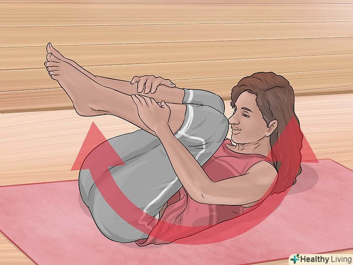 Спробуйте "скластися і прокотитися".це сприяє розтяжці м'язів попереку, хоча не так ефективно, як розтяжка м'язів верху спини і плечей.- Сядьте на підлогу, притиснувши ноги колінами до грудей.