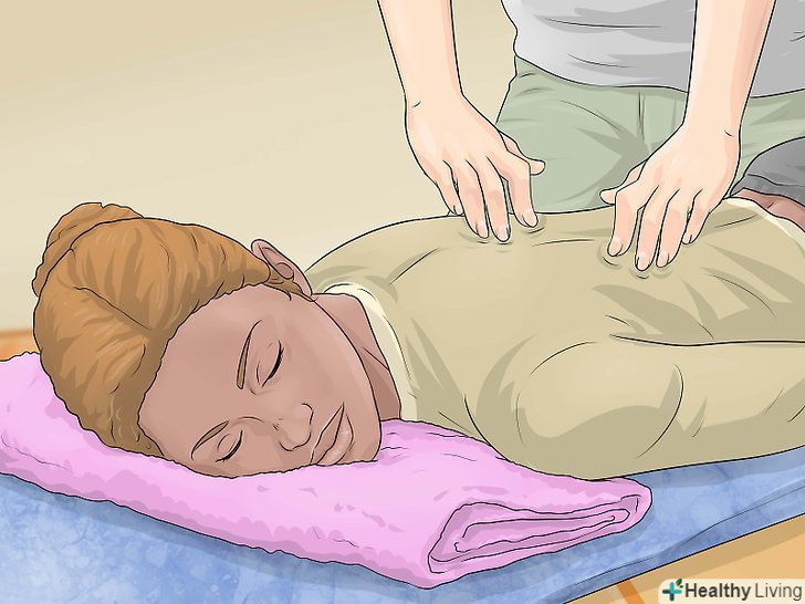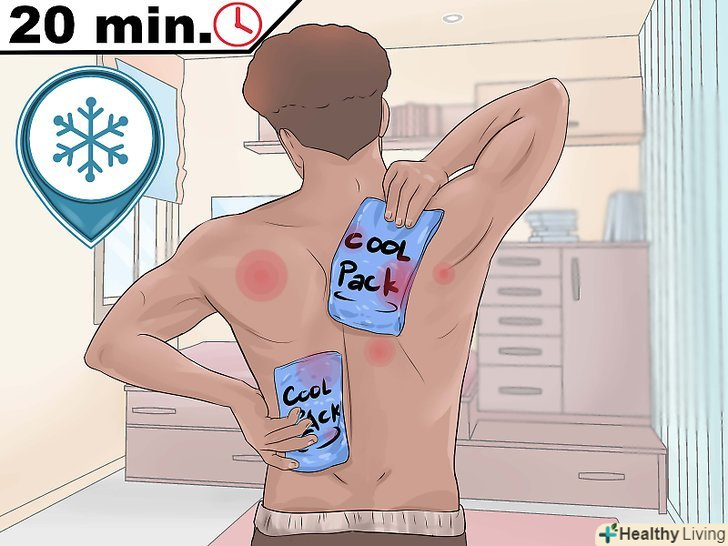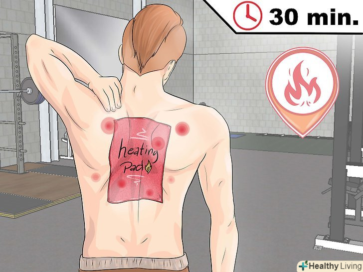 Прикладайте до пошкодженої ділянки теплі компреси, щоб розслабити м'язи.у разі часто повторюваних або хронічних болів тепло діє краще, ніж холод.[23] для цього користуйтеся грілкою, гарячою ванною або душем.- Прикладайте зігріваючий компрес не більше ніж на 15-20 хвилин, до трьох разів на день.