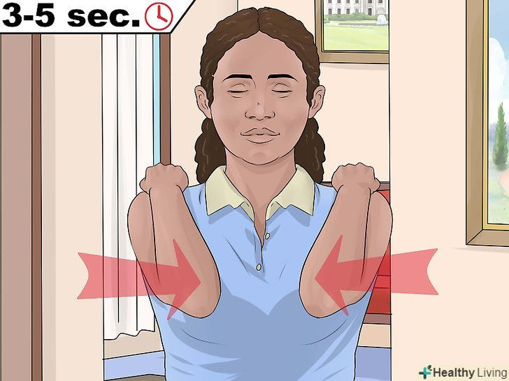 - Залишайтеся зі зведеними ліктями протягом 3-5 секунд, намагаючись дихати рівно і глибоко. Потім розслабтеся. Повторюйте дану вправу кілька разів протягом дня.