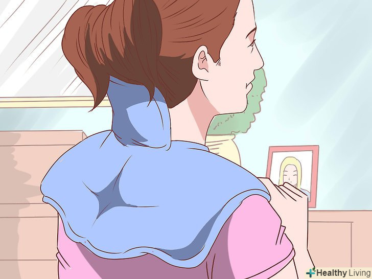 Використовуйте тепло.було встановлено, що тепло розслабляє напружені м'язи. Щоб збільшити приплив крові до напружених м'язів в домашніх умовах, використовуйте грілку. Коли м'яз спазмована протягом тривалого періоду, приплив крові до неї зменшується. Застосовуючи тепло, ви розслабите м'язи і зменшите біль, збільшуючи приплив крові до цієї області.[4]- Прикладайте грілку до вузлів скупчення стресу на шиї протягом декількох хвилин, два рази в день. Якщо у вас немає грілки, змочіть чистий рушник в гарячій воді, відіжміть його і використовуйте в якості гарячого компресу.