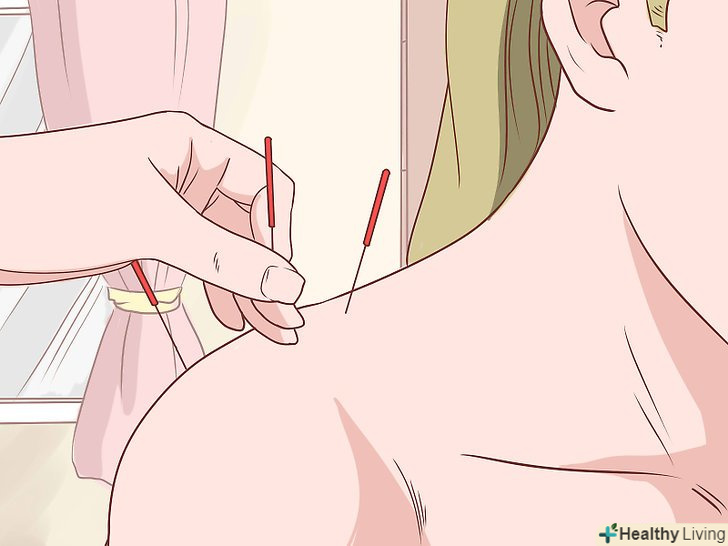 Подумайте про лікування методом голковколювання.голковколювання-метод альтернативної медицини, в якому використовують невеликі голки для введення їх в шкіру в конкретні больові точки по всьому тілу, знімаючи напругу і біль. Цей метод вже давно використовується в східній медицині і стає все більш популярним в західній культурі. Багато людей використовують акупунктуру, щоб зняти різні види болю.[8]- Деякі люди можуть з побоюванням ставитися до голок, але ваш голкотерапевт допоможе пройти через весь процес.