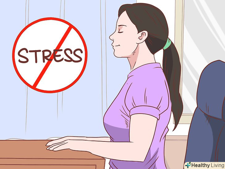 Усувайте психічну напруженість.емоційний стрес впливає на організм людини. Постарайтеся зняти тривожність шляхом заспокоєння свого розуму. Можете спробувати медитацію, це відмінний спосіб розслабитися. Також можете включити в своє повсякденне життя щотижневі заняття йогою. Йога і медитація навчать вас правильно виконувати глибокі дихальні вправи, які є відмінним способом впоратися зі стресом.[10]- Ви можете відвідувати заняття з медитації та йоги або проводити їх в комфортній обстановці свого будинку. Щоб медитувати, все, що вам потрібно, це тихе, зручне місце, де ви зможете закрити очі і зосередитися на своєму диханні.