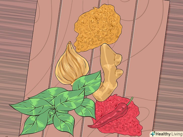 Додавайте в їжу протизапальні трави і спеції.деякі спеції і трави дозволяють послабити біль, викликану запальним процесом ревматоїдного артриту. Деякі з них можна приймати в таблетках (часник, куркума, омега-3 жирні кислоти, вітаміни С і Е), але перед прийомом краще обговорити їх з лікарем. Краще отримувати ці речовини з їжею, ніж з таблеток. Вам будуть корисні наступні спеції:[18][19]- Часник;