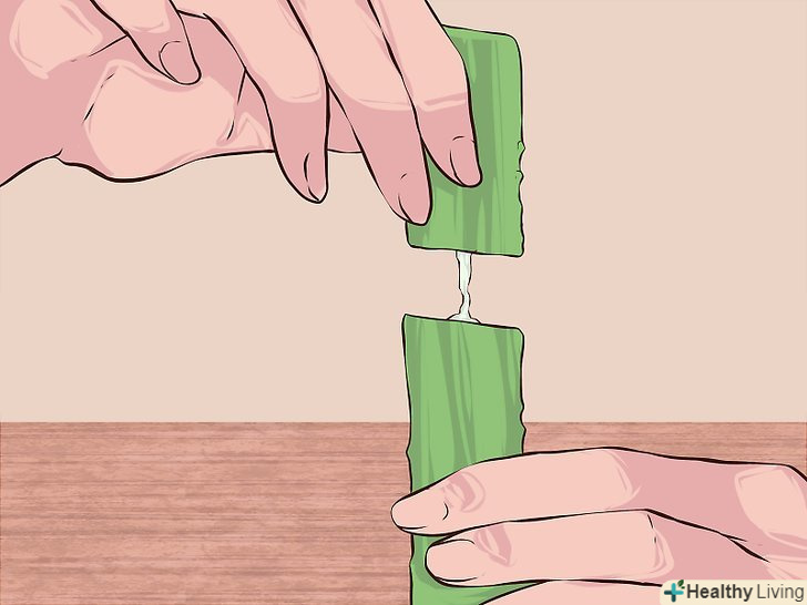 Отримайте гель алое з рослини.якщо у вас є доросла рослина алое, зріжте лист гострими ножицями, зніміть верхню оболонку, і ви побачите прозорий гель. Дістаньте гель пальцями або зріжте кінчик і видавіть гель.- Можна купити готовий гель в аптеці або гіпермаркеті. Шукайте органічний гель без добавок і консервантів.