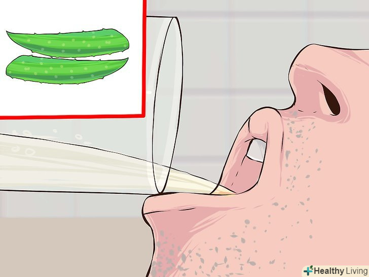 Пийте сік алое вера.купуйте органічний сік без добавок і консервантів. Почніть з невеликих кількостей (50-90 мілілітрів в день), щоб зрозуміти, якою буде реакція організму. Поступово Підвищіть дозування до 50-90 мілілітрів три рази на день. Сік може здатися неприємним на смак, і вам потрібно буде звикнути до нього. Можна додавати до нього чайну ложку меду або змішувати його з фруктовим соком.- Не пийте гель Алое вера, оскільки він діє як сильне проносне і може викликати діарею.[10]