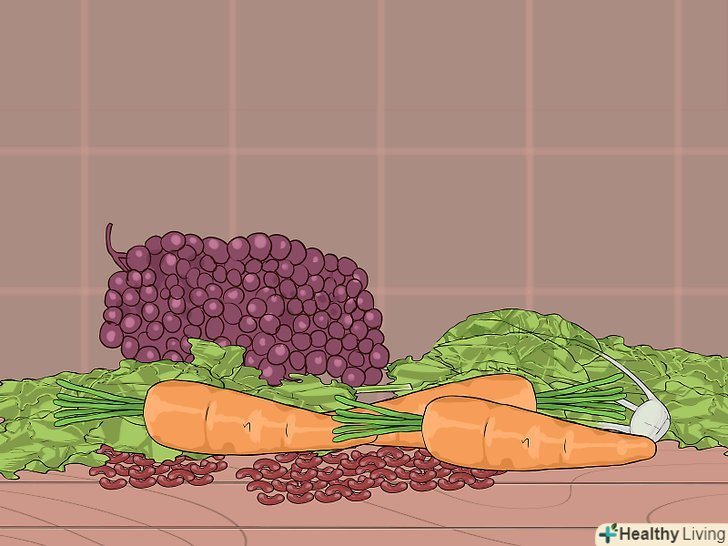 Їжте більше фруктів і овочів.приблизно 2/3 всієї їжі повинно припадати на фрукти, овочі і цільнозернові злаки.[13] у фруктах і овочах міститься багато антиоксидантів, які борються із запальним процесом. Намагайтеся купувати свіжі продукти. Можна готувати і заморожені продукти, але не додавайте до них жирний масляний соус. Відмовтеся від фруктів в солодкому сиропі. Краще їжте свіжі фрукти і овочі яскравих кольорів, в яких міститься багато антиоксидантів. До них відносяться:- Ягоди (Чорниця і малина);