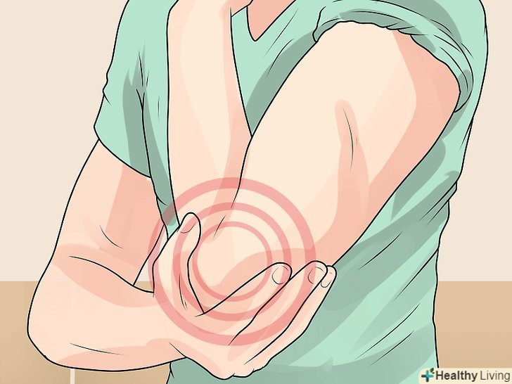 Звертайте увагу на будь-який біль в суглобах.біль в суглобі є найбільш характерною ознакою всіх форм артриту.[2] біль може виникнути після фізичних вправ або перевантаження суглобів, що відбувається в результаті зношування суглобових тканин (ОА), або вранці або після періодів малої активності, що більш характерно для РА.- Як правило, хворі артритом відчувають тупий, ниючий і / або пульсуючий біль. При більш деструктивних формах артриту біль може бути гострою і нагадувати удар електричним струмом.