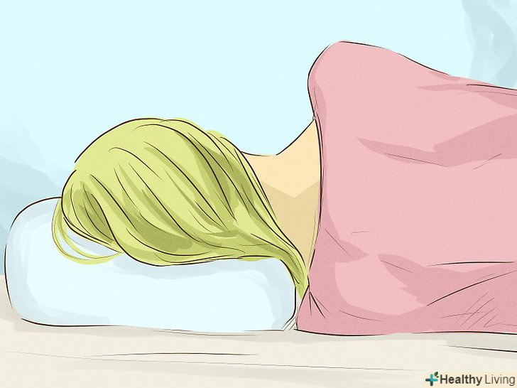 Зверніть увагу на свою позу уві сні.проблеми з шиєю можуть виникнути через те, що вам незручно спати. Занадто м'який матрац або товсті подушки можуть негативно вплинути на шию і верхню частину спини. Намагайтеся не спати на животі, оскільки в цій позі голова і шия повернені так, що це викликає роздратування суглобів і м'язів шийного відділу хребта.[5]- Спробуйте спати на боці з руками нижче рівня голови і злегка зігнутими в тазі і колінах ногами (поза ембріона).