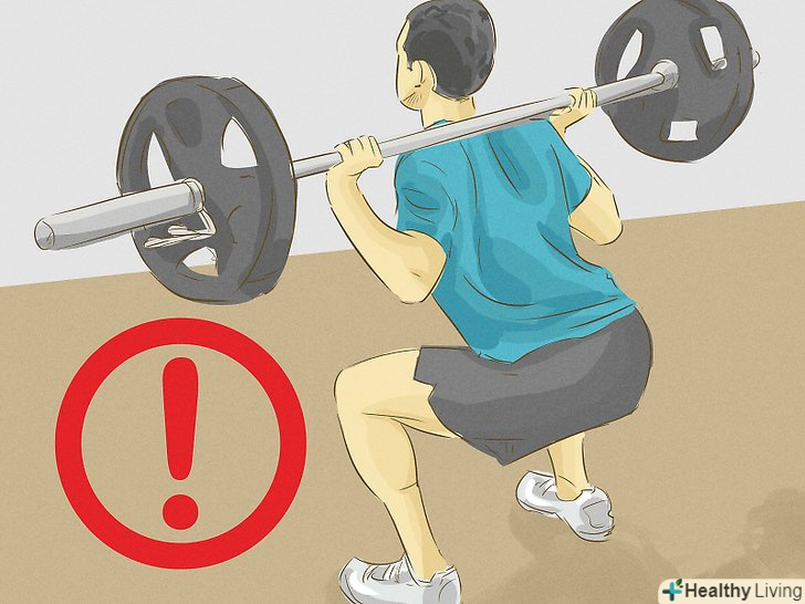 Змініть розпорядок своїх занять спортом.можливо, проблеми з шиєю пов'язані з фізичними вправами, які ви виконуєте вдома або в тренажерному залі. В цьому випадку спробуйте зробити невелику перерву і кілька днів не займатися тими вправами, які викликали дані проблеми (якщо ви зможете визначити ці вправи), щоб ваша шия відновилася. Не виключено також, що ви тренуєтеся занадто інтенсивно (надмірна вага або велика кількість повторів) або перебуваєте в поганій фізичній формі — в разі будь-яких сумнівів проконсультуйтеся з персональним тренером.- Якщо при виконанні присідань з обтяженням ви кладете гриф штанги на підставу шиї, це може викликати розтягнення шийних суглобів.