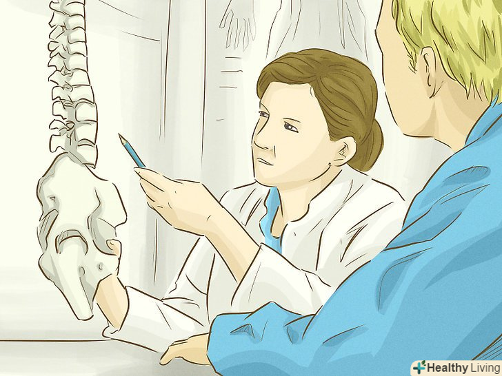 Зверніться до лікаря.звичка хрустіти шиєю може розвинутися через серйозні захворювання, таких як артрит, остеопороз, рак або деформація кісток.[10] дегенеративні захворювання тканин шиї часто викликають скрипучі і потріскуючі звуки при будь-яких рухах голови. Звичка хрустіти шиєю зовсім не означає, що у вас будь-яка хвороба, але якщо ви не змогли позбутися від неї за допомогою інших методів, слід розглянути і таку можливість.- Щоб виявити можливі причини хрускоту в шиї, лікар може призначити рентгенівське дослідження, остеосцинтиграфію (сканування кісток), магнітно-резонансну (МРТ) або комп'ютерну (КТ) томографію.