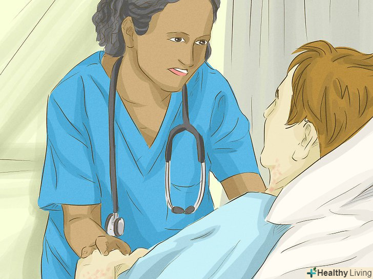 Взаємодійте з іншими людьми, які надають медичну допомогу хворому.ви-частина великої команди, яка допомагає людині відчувати себе здоровим і щасливим. Важливо регулярно розмовляти з медиками та іншими людьми, від яких залежить здоров'я хворої людини. Лікарі, медсестри, соціальні працівники та інші люди можуть дати вам важливу інформацію про стан здоров'я людини і про необхідний йому догляд. Вони також можуть дати вам рекомендації щодо догляду. Лікування в поєднанні з домашнім доглядом може зробити істотний вплив на здоров'я і самопочуття людини.[3]- Попросіть дозволу у хворого на контакти з цими людьми. Можливо, Вам буде потрібно письмовий дозвіл. Важливо переконати людину, що все це в його інтересах.