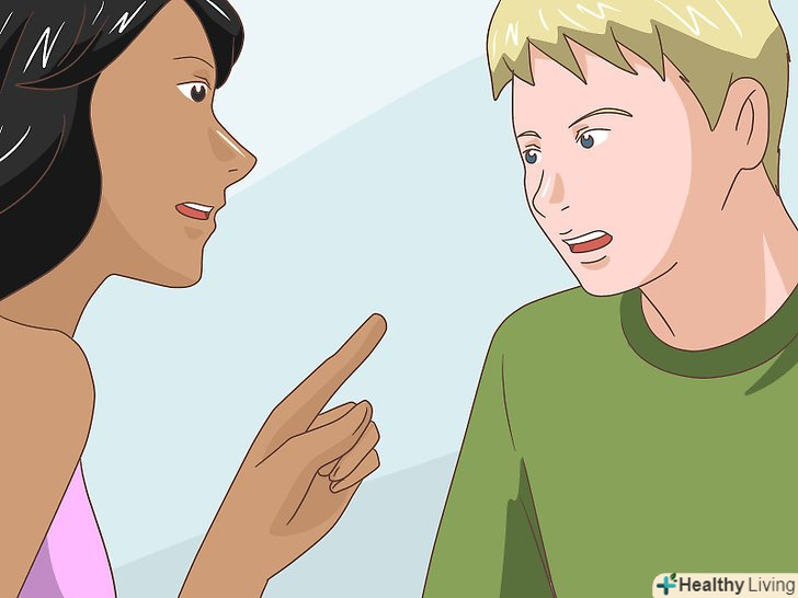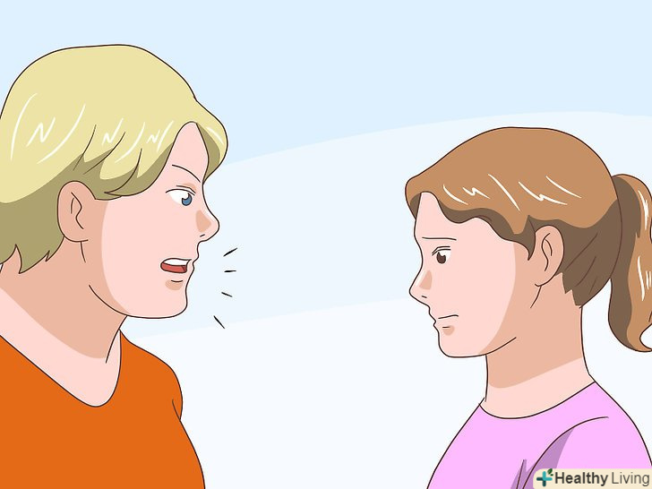 - Перенаправте агресію людини, перефразувавши його слова в менш провокативній манері.[29] якщо людина каже, що хоче вдарити Машу шваброю, перефразуйте це так:"ти засмучена, що Маша подряпала твою машину, і тепер ти хочеш, щоб вона все виправила". Якщо вам все вдасться, людина стане спокійніше і буде готовий до конструктивного діалогу.