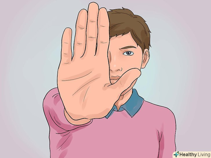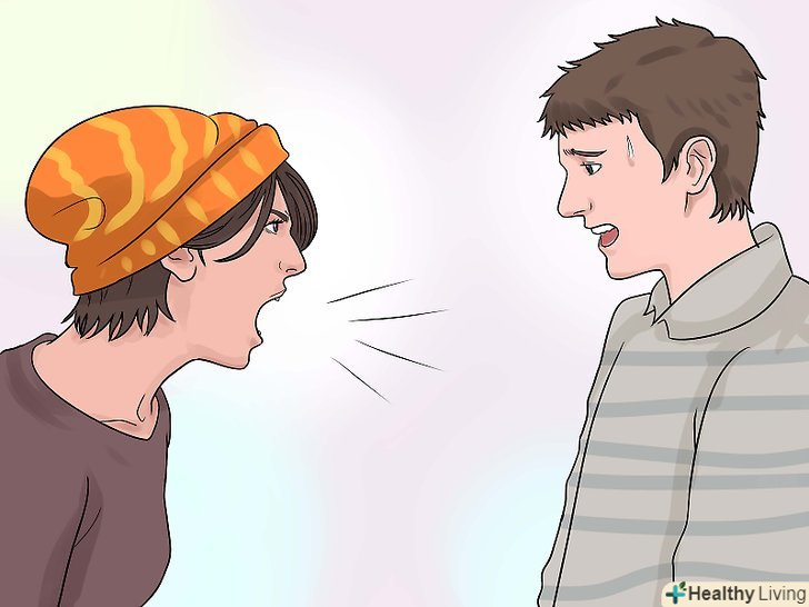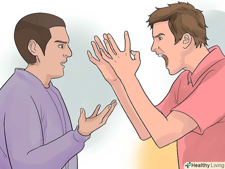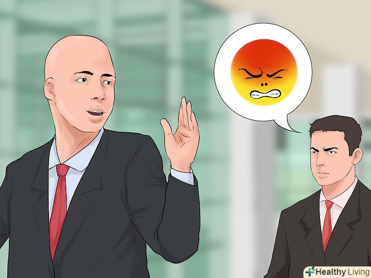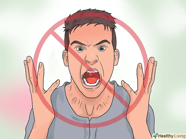 Зберігайте спокій.Говоріть спокійним тоном. Не підвищуйте голос і не кричіть у відповідь. Задійте незворушний, але рішучий мову тіла.[13]- Намагайтеся не сутулитися і не схрещувати руки, інакше співрозмовник вважатиме, що вам нудно або ви закриті для розмови.[14]