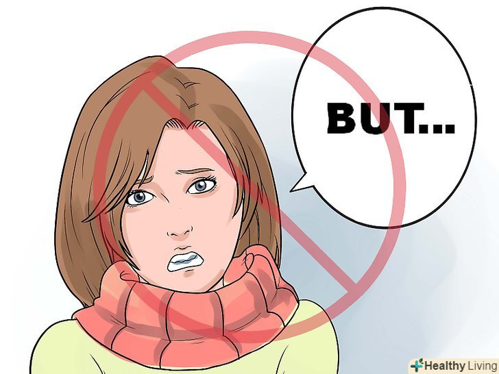 Не кажіть "але". Частка " але " перекреслює все, що було сказано раніше. Якщо людина чує "але", він може припинити слухати. Ваші слова звучать для нього як "ти не правий" .[40]- Наприклад, не кажіть: "Я розумію тебе, але ти повинна ________".