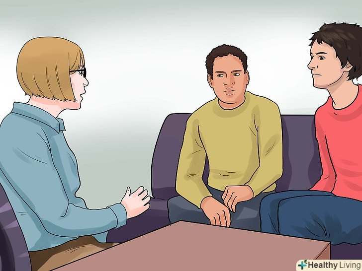Зверніться до фахівця.крім послуг посередника, фахівець з вирішення конфліктів або управління гнівом на кшталт психолога або психотерапевта допоможе знайти довгострокові рішення. Це особливо важливо, якщо на вас злиться близька людина — чоловік, батько, дитина, брат або сестра. Якщо ви постійно сваритеся або людина зривається з найменшого приводу, то слід звернутися до фахівця, який виступить в ролі посередника, а також навчить вас ефективно спілкуватися і вирішувати проблеми.- Фахівець навчить вашого родича або друга розслаблятися і боротися зі стресом або гнівними почуттями, висловлювати свої емоції без шкоди і помічати негативні думки, які стають причиною гніву.[43]