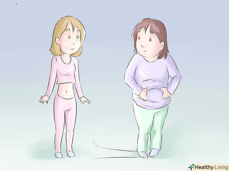 Не лайтеваше тіло.оскільки ви не повинні терпіти, коли інші обговорюють ваше тіло, ви, безумовно, не можете лаяти себе. Це тільки викликає негативні почуття і підсилює проблему. Вам це не потрібно. Навіть якщо вам здається, що це правильно, навіть якщо це приймається суспільством (вміння висміяти самого себе надзвичайно популярно сьогодні), не робіть це. В цьому немає сенсу.- Поки ми не забули, не варто обговорювати і фігури інших людей. Будь вони занадто товстими або занадто худими. Якщо ви говорите: "Дівчинка моя, тобі потрібно з'їсти чізбургер! "- це те ж саме, що і якщовам скажуть, що вам варто було від нього відмовитися. Вам так може не здаватися, і, правда, суспільство на її боці, але у неї все ще можуть бути свої комплекси. У більшості жінок (читайте: людей) вони є!