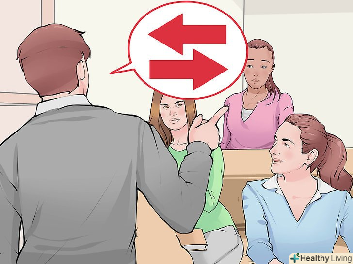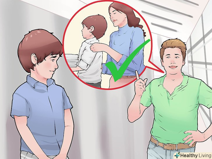 Вмійте постояти за себе.якщо ігнорування не працює, то вам потрібно не давати себе в образу. Часто задираки звертають свої зусилля на людей, коли відчувають, що ті не дадуть відсіч. Якщо ви опинитеся міцніше очікуваного, то ваш кривдник може відступити.[5]- Скажіть їм негайно припинити знущання. Голосно скажіть фразу на кшталт " ні, так не піде!", а потім підіть. Якщо після цього задирака причепиться до іншого учня, то ви можете втрутитися. Скажіть: "Гей! Залиш його в спокої!”. Після чого ви можете піти разом.