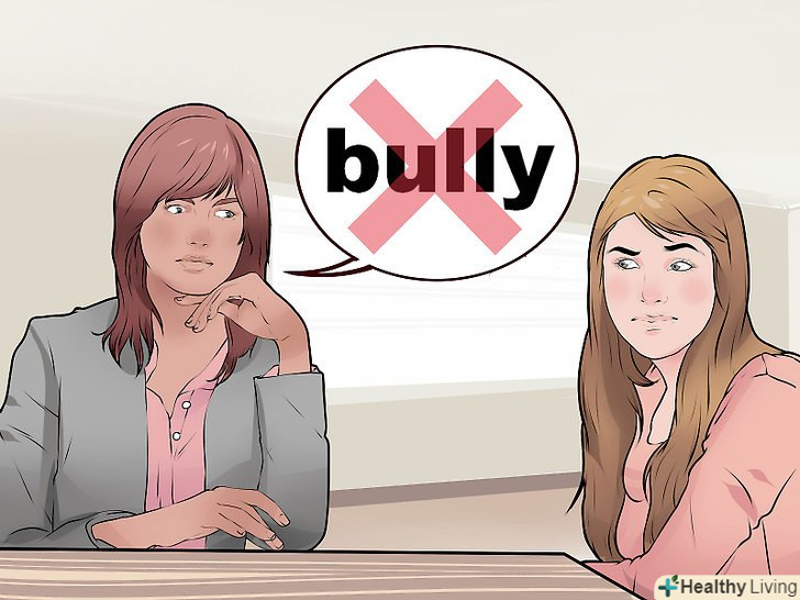 Обходіться без ярликів.учні чутливі до ярликів на кшталт "задирака". Якщо відбувається розмова з батьками, то багато займуть оборонну позицію, якщо ви звинуватите їх дитини в агресивній поведінці. Помітивши таку поведінку, говорите саме про конкретні дії такого учня. Не називайте його цькуванням, щоб запобігти непотрібне опір, яке завадить вам знайти ефективне рішення проблеми.[9]- Говоріть про конкретні помічені дії і чому ви вважаєте це проблемою. Наприклад, не потрібно говорити"Андрію, я помітила, що ти знущався над Максимом в спортивному залі". Замість цього скажіть безпосередньо про проблемну поведінку:"Андрію, я помітила, що ти коментував вагу Максима, коли ви займалися в спортивному залі".