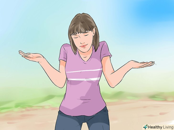Не дозволяйте агресору думати, що вам не все одно.мета хулігана-змусити вас плакати і відчувати себе нікчемою. Звичайно, те що він говорить, може бути дуже болючим і змусить вас сумніватися в собі, але ви ніколи не повинні показувати, що його слова Вас ранять. Якщо він говорить щось неприємне і ви помітно засмучені, це лише мотивує його і далі продовжувати в тому ж дусі. Але якщо він обзиває вас, а ви лише знизуєте плечима і ведете себе так, як-ніби це ні крапельки вас не чіпає, навряд чи він продовжить дошкуляти вас.[3]- Зрозуміло, що Вам буде важко тримати емоції всередині, особливо якщо агресор дійсно ранить вас. Просто намагайтеся зберігати спокій, глибоко дихайте, порахуйте до десяти і робіть все, що можете, щоб його слова вас не чіпали. Якщо вам потрібно виплакатися, робіть це наодинці, і хоча б в присутності задираки зберігайте спокій.