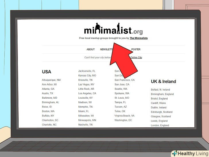 Вступіть в суспільство мінімалістів.у багатьох країнах існують різноманітні спільноти, присвячених мінімалістичному способу життя. Вони організовують зустрічі місцевих груп-це унікальна можливість зустрітися з іншими людьми, які поділяють ваші життєві принципи, і обмінятися досвідом. Дізнайтеся про такі зустрічі у Вашому місті або пошукайте онлайн-спільноти мінімалістів.[4]
