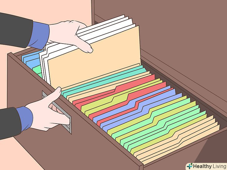 Розберіться з безладом в паперах.неорганізовані папери створюють хаос і ускладнюють пошук важливих документів в потрібний момент. Розсортуйте окремі папери за категоріями, наприклад податкові документи, гарантійні талони та інструкції, банківські виписки і так далі. Купуйте шафку для зберігання документів або папки для важливих паперів. Не забувайте відразу ж відправляти в сміттєвий кошик непотрібні папірці (рекламні листівки, магазинні каталоги). Щоб зменшити кількість паперів, підключіть послугу онлайн-банкінгу та оплату комунальних рахунків через Інтернет.[5]
