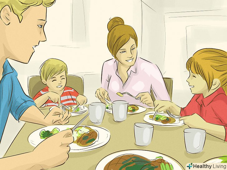 Висловлюйте подяку в сім'ї.приділяйте час на зразок спільної вечері, щоб обговорити ті події дня, за які ви вдячні. Нехай кожен член сім'ї приєднається до обговорення і висловить свою подяку.[2]- Заведіть традицію збиратися за столом і знаходити хоча б один привід для подяки.