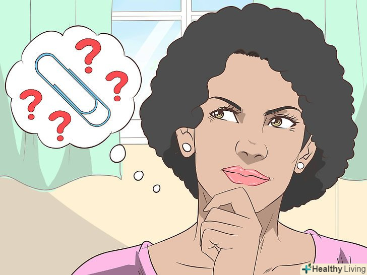 Вчіться дивитися на речі по-новому.Один із способів стимулювати творче мислення-кинути виклик усталеному погляду на речі. Можна придумати прості вправи, які допоможуть знайти творчий підхід до проблеми або задачі. Наприклад, візьміть знайомий предмет на зразок скріпки і придумайте для нього десять нових варіантів застосування.[16] зазвичай за допомогою скріпки з'єднують кілька аркушів паперу, але можна придумати і інші варіанти:- Вставте скріпки з двох боків кукурудзяного качана, щоб ви могли з'їсти його, тримаючись за скріпки.